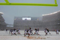 Stadium Review - The Blizzard Bowl of 2007 ![]() Last week’s drubbing of the 0-13 Miami Dolphins at Ralph Wilson Stadium had Bills fans BILLieving that they might be on the verge of a playoff appearance in 2007. This week the Buffalo Bills were set to take on the Cleveland Browns at Cleveland Browns Stadium and I had scored some cheap Cleveland Browns tickets so I could be in attendance. A win for the Bills kept their playoff hopes alive, a loss meant elimination from the playoff picture. The weather reports all week called for snowy blizzard-like conditions with 43 mph winds throughout the entire game and the city of Cleveland delivered. It was an amazing atmosphere for football … like living in snow globe. I’d arranged for some cheap Cleveland Browns tickets through my fraternity brother Arnold who is a die-hard Cleveland Browns fan and the crew from Buffalo who joined me for my trip to Stadium #3, Ford Field, were in town as well. It was decided that the Bills vs. Cleveland matchup would be a nice backdrop for our now annual “Mann-cation” Buffalo Bills Trip. Arnold had seats in the Dawg Pound for two of us, so I would be located amongst some of the rowdiest Cleveland Browns fans in the stadium … and I was dressed in Bills Colors. I relished the opportunity presented to me. It was to be a game in December in inclement weather amongst less than agreeable fans, and the Buffalo Bills playoff lives were at stake. How much more drama can one ask for? Where would you rather be than right here, right now? When we arrived at Cleveland Browns Stadium, visibility was low. You couldn’t even tell there was a field out there. Snow and ice began accumulating on my hat and shoulders immediately, but once I settled in, dressed in four sweaters and three pairs of socks, I was toasty warm. I had heard all types of horror stories about the occupants of the Dawg Pound and fully expected to be pelted with snowballs, dog biscuits, or full cans of beer. But the rain of sealed liquid beverages and canine treats never came. The Buffalo Bills themselves weren’t as lucky, as several players were beaned with snowballs by Cleveland Browns fans. I myself was tempted to toss an orb of malcontent at the cause of my dismay, but the Buffalo Bills were definitely out of my limited range. Instead, I decided to suffer in silence as the Bills took to complete ineptness in all phases of their game. The Browns fans were surprisingly agreeable however. They treated me with respect and happily took my picture without launching my camera or harassing me for asking. There was the typical verbal jabs that go with being a fan of the visiting team, but the locals struck me as a classy group that's every bit the fan base the Bills enjoy in Buffalo. The highlight of my fan-watch experience was a 70-year old woman sporting an orange Mohawk as she screamed obscenities at the refs below - classic! Well, the Buffalo Bills were dominated in every facet of the game. Their defense was tossed around by the Cleveland Browns running attack as Jamal Lewis pounded the Bills for 163 yards on 33 carries. I thought WE were the cold weather team, I thought WE had a dominant running attack, apparently I was delusional. The Bills proved less than capable in inclement weather, which is of great concern to me as this team matures. But I didn’t let the scoreboard ruin my experience at Cleveland Browns Stadium. Even though the Bills took an 8 – 0 loss on the chin, they were never truly out of it. I watched my team go down in flames as Cleveland was pounded by one of the more brutal storms of the year. Standing there watching in Section 319, I couldn’t help but smile with those poor bastards slipping and sliding in the muck out there. It was an incredible day for a football game! For more information on the city of Cleveland, Ohio check out my other reviews by clicking on the links below: NFL: September 29, 2013 - Cincinnati Bengals vs. Cleveland Browns NFL: November 14, 2010 - New York Jets vs. Cleveland Browns NBA: November 13, 2010 - Indiana Pacers vs. Cleveland Cavaliers NBA: Quicken Loans Arena, Cleveland Cavaliers - General Information |