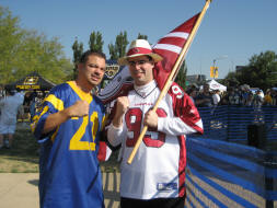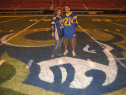 Rams Banners from Flag-Works.com | Hans Steiniger and Crystal on the 50-yard line | Waiting for the call to come into the game. | ||