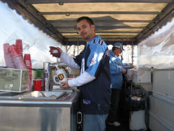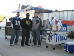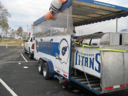 would attempt to stake claim to his title.We arrived at LP Field, the Tennessee Titans Stadium, at about nine in the morning. The Titan Trailer was quickly unpacked with roll carts, tables, popup tents, and a rolling flatscreen TV. Setup