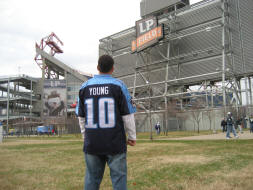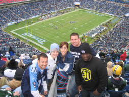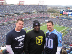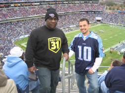 cuisine that the group serves up. A Dynamic Duo indeed! LP Field was built in the vein of the more modern facilities in the NFL complete with the wide open concourses, massive flat screen scoreboards, and common areas for drinking and meeting up with other fans. As we made our way to the top of the stadium, section 320, I was greeted with a round of "Quest for 31!" cheers. Earlier in the weekend, I ran into some NY Jets fans who had driven over from Wisconsin t o