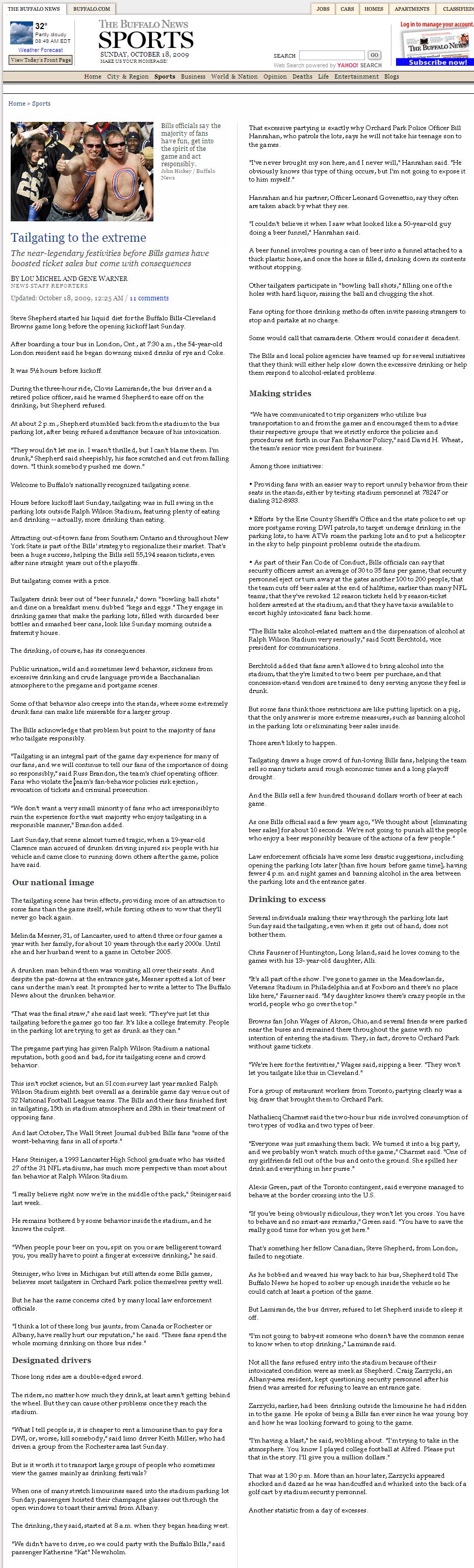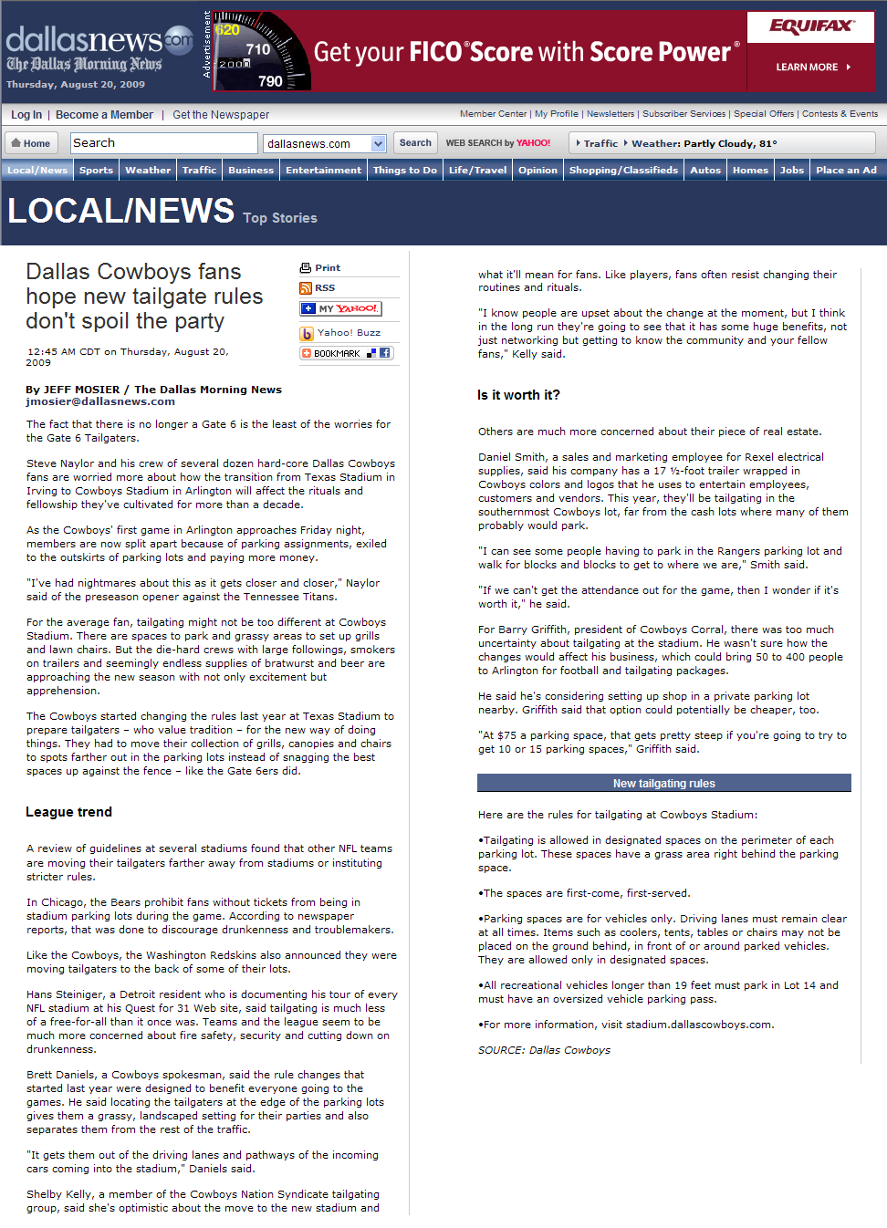 San Diego Union Tribune San Diego, California Saturday, February 6, 2010 Tailgating Gets Boot in Stadium Plan by: Matthew T. Hall |